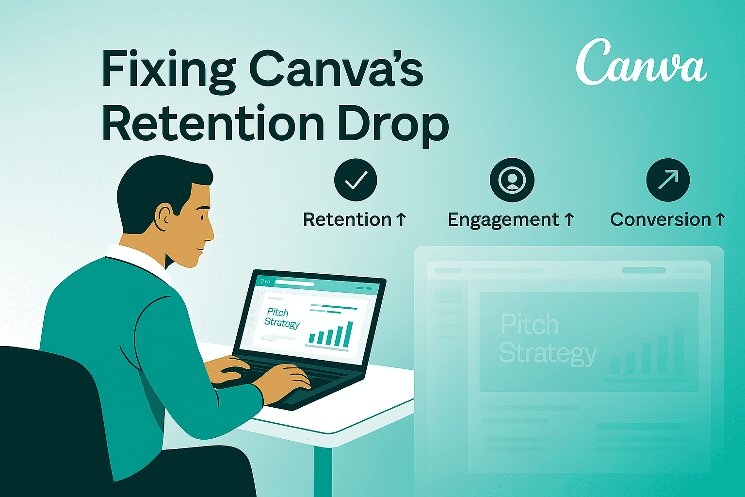 This project focuses on improving retention for Canva’s core user segment: working professionals. I started with user segmentation, selected a high-potential persona (Marketing Manager from a tech startup), and uncovered friction areas like lack of onboarding guidance, poor personalisation, and the absence of advanced productivity tools.