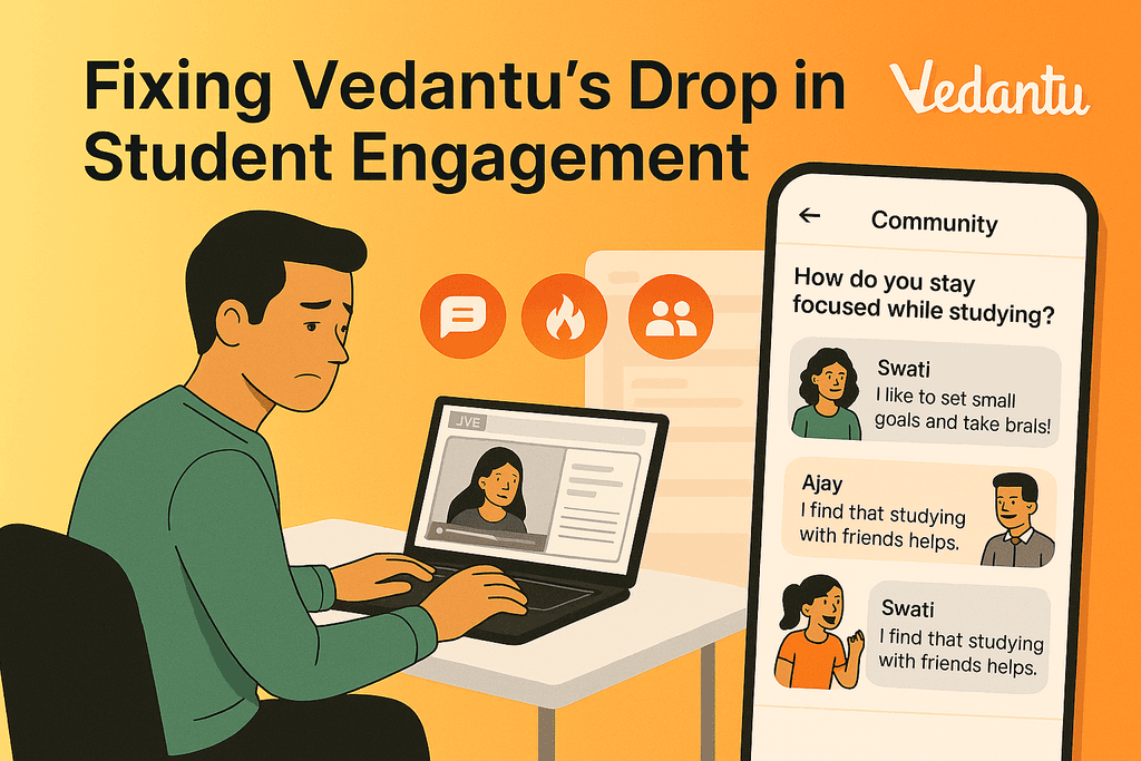 In this teardown, I analysed Vedantu’s user retention issues through the lens of student behaviour and learning psychology. My research focused on Tier-2 and Tier-3 learners, where factors like isolation, lack of community, and unclear progress pathways lead to disengagement.